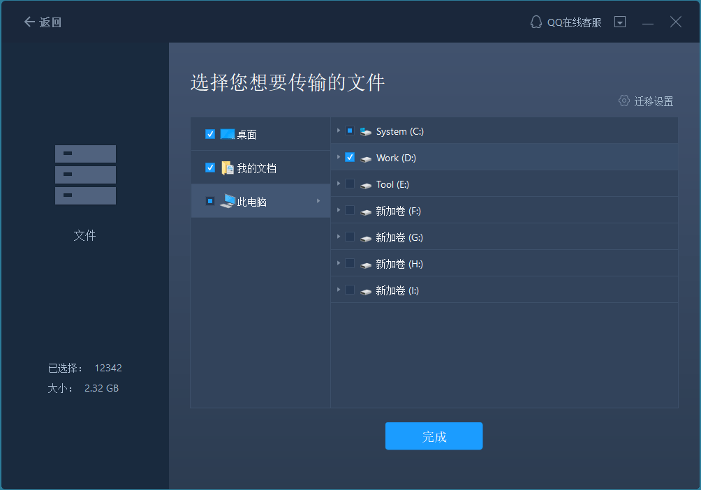 如果您更换了新计算机并计划将文件从原硬盘搬到新计算机上,可以在两台计算机上都运行易我电脑迁移工具并选择通过网络传输。
