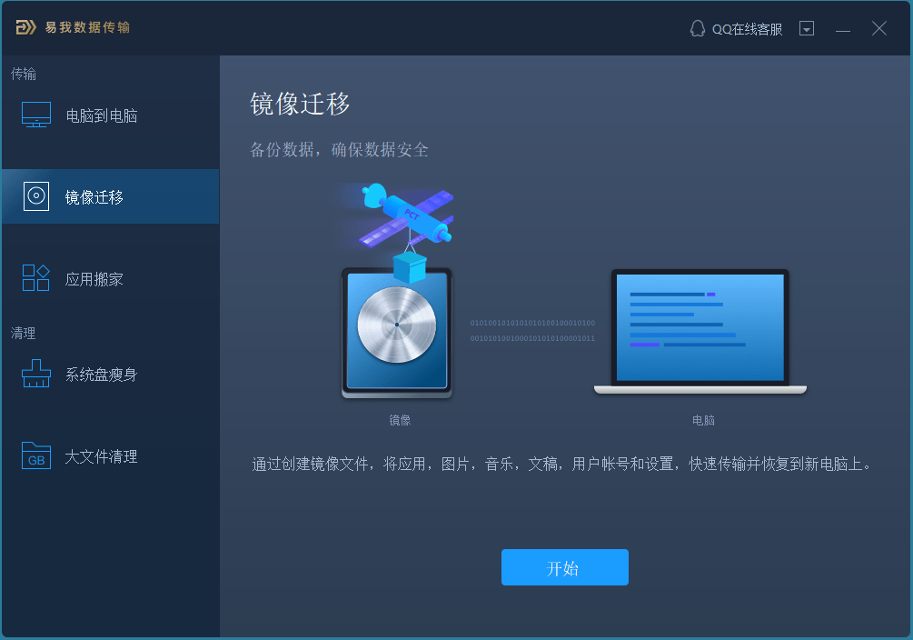 在Windows计算机上启动易我电脑迁移软件,选择「镜像迁移」模式,单击「开始」。