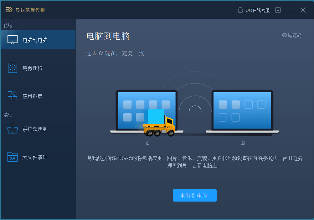 电脑到电脑:克隆和迁移旧计算机上的文件、程序、软件或应用到新计算机。