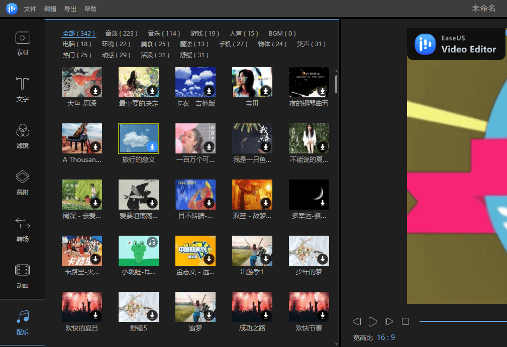 如果您是利用YouTube来上传影片的话,建议可以利用YouTube音效库中的免费音乐来搭配影片,但若不是,就需要自行寻找相关的配乐,此时要找到适合的且又是没有版权问题的配乐不但费力又费时;但许多Vlog剪辑影片软件中如易我剪辑大师,就有系统预设可使用的相关配乐,便可以轻松套上制作。