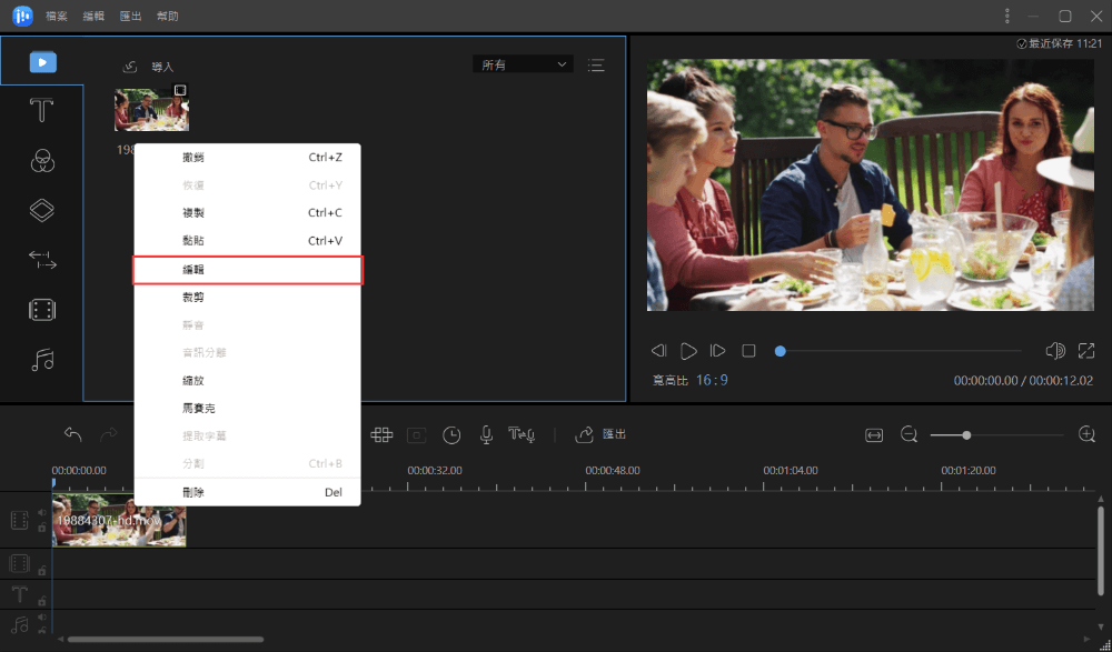 点击添加图片描述(最多60个字)编辑右键单击影片,然后选择「编辑」。